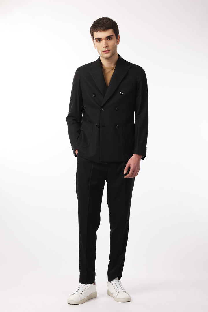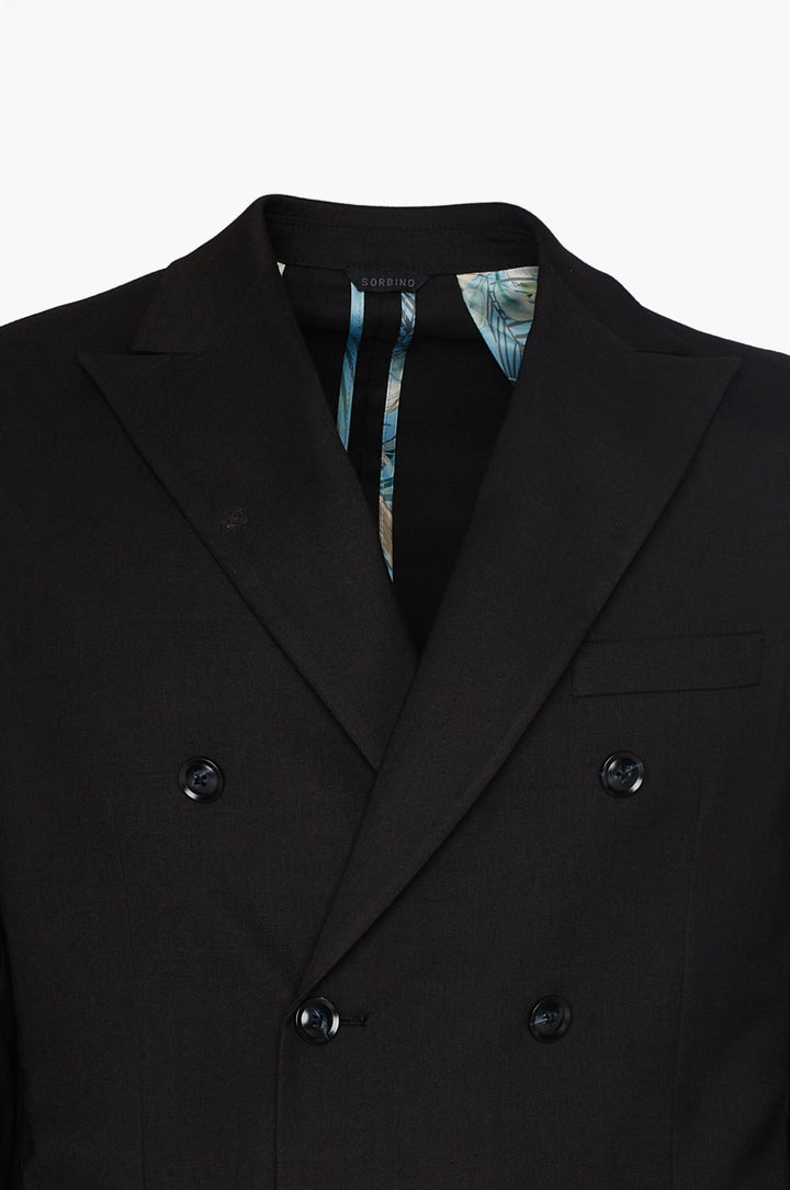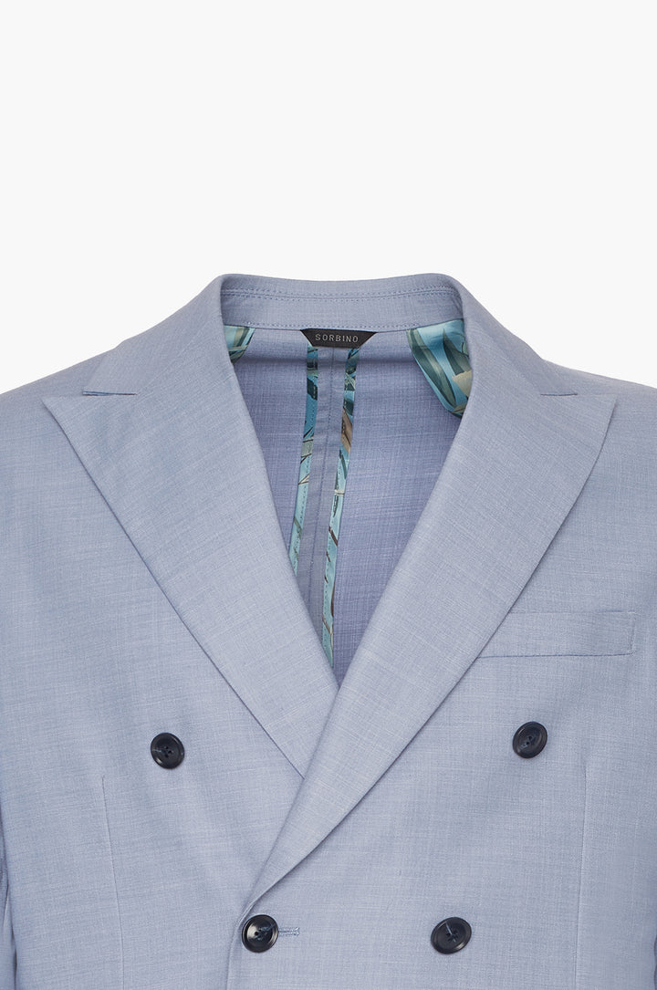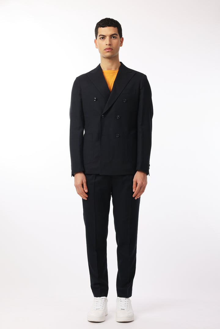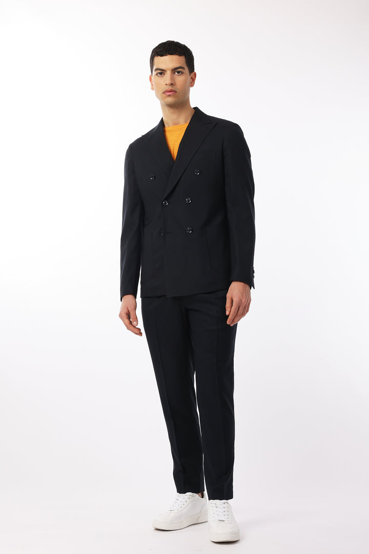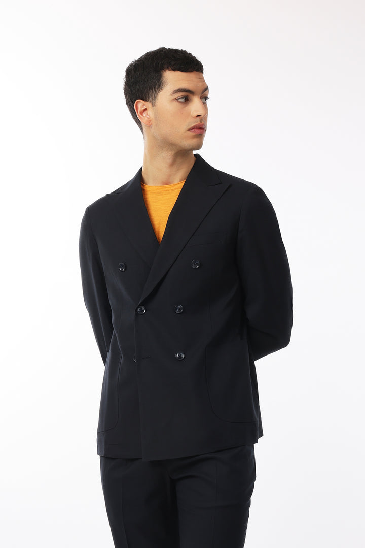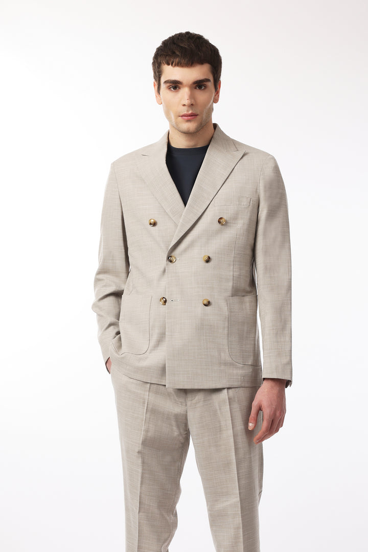 Abito classico, giacca doppio petto con tasche frontali e taschino sul petto. Revers classici.
