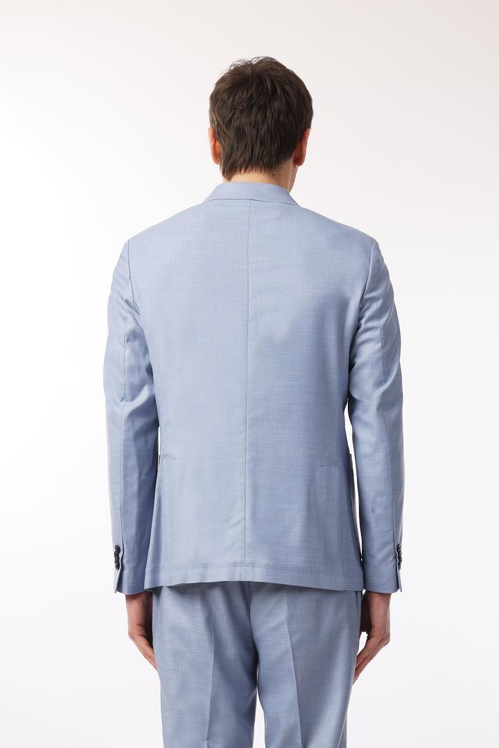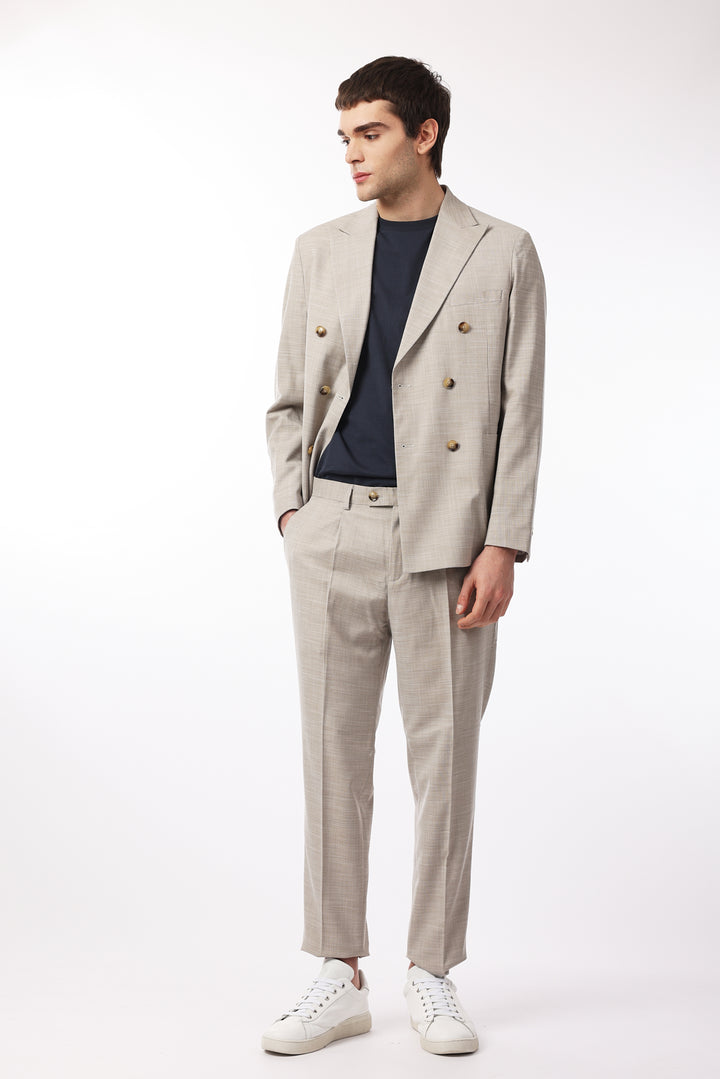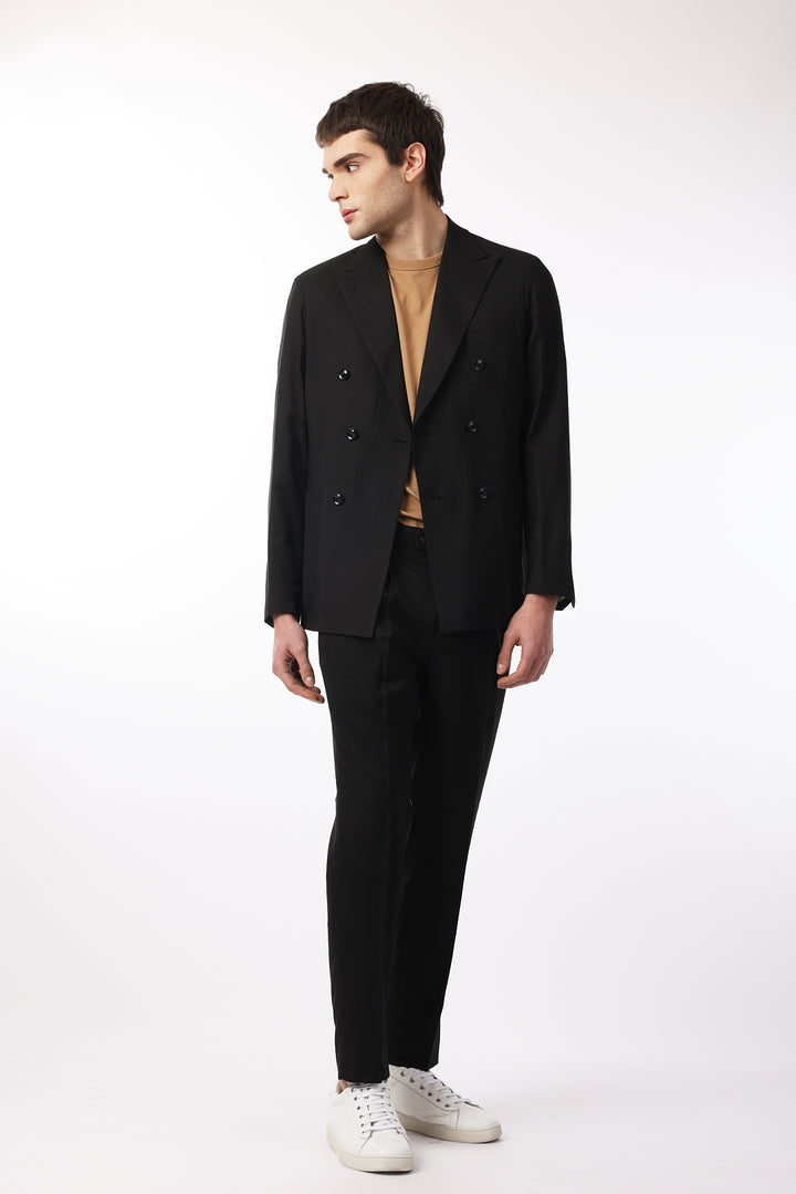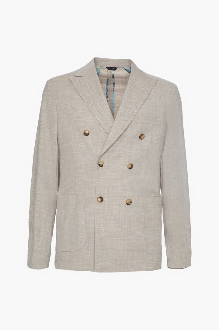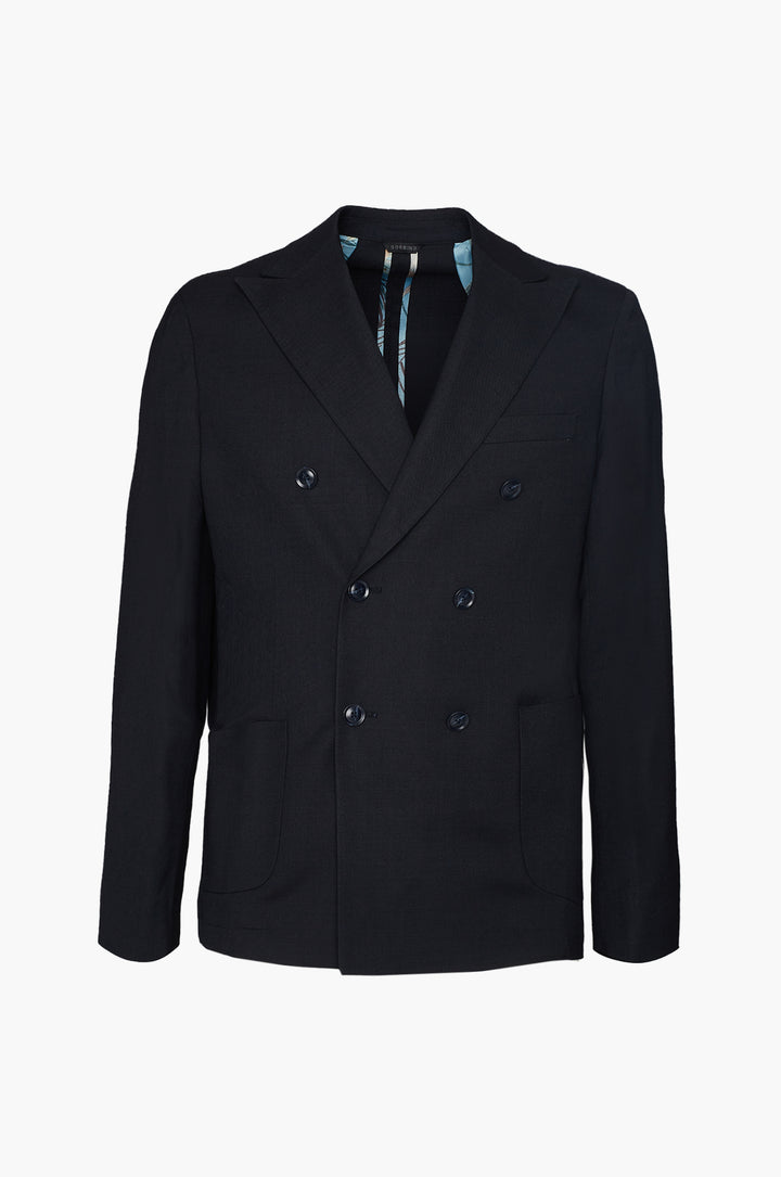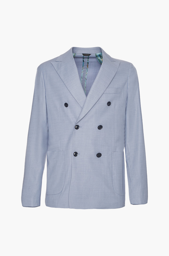 Abito classico, giacca doppio petto con tasche frontali e taschino sul petto. Revers classici.