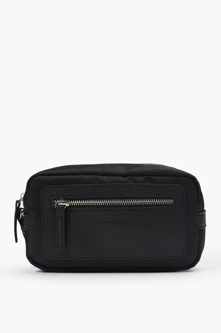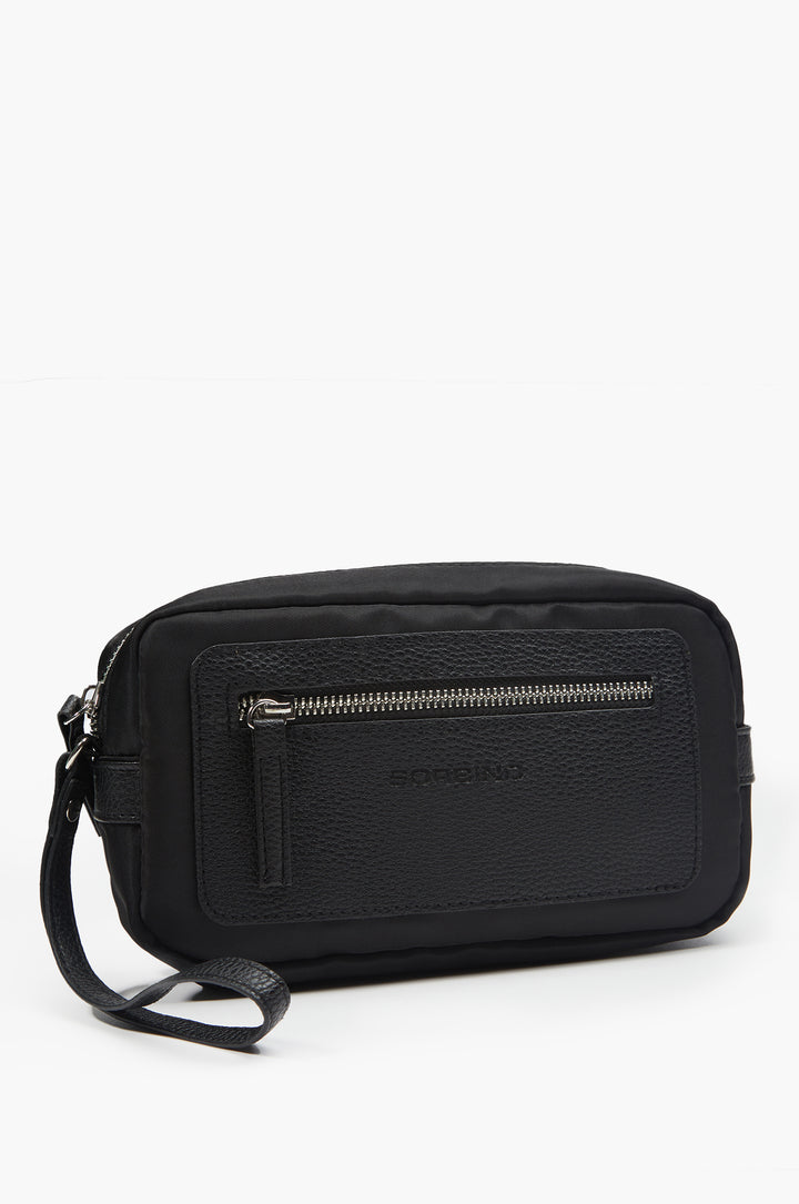 • Clutch bag with matching handle and leather-effect details.