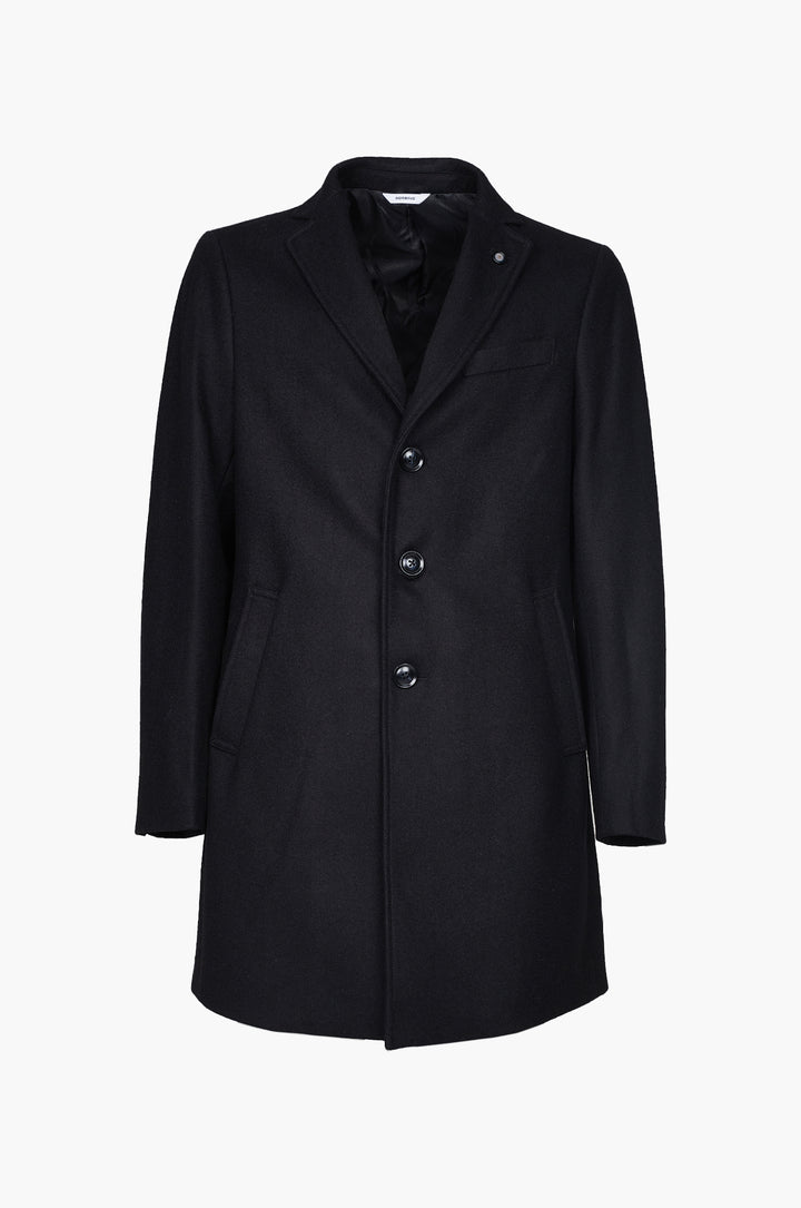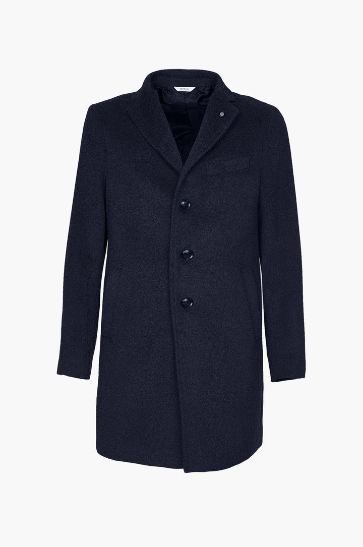 • Tasche a filetto sui fianchi e dettaglio tasca interna.